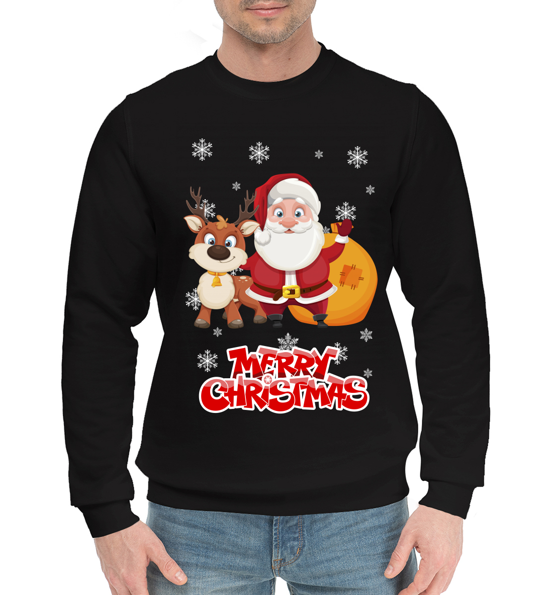 Мужской хлопковый свитшот с принтом «Санта с оленем»