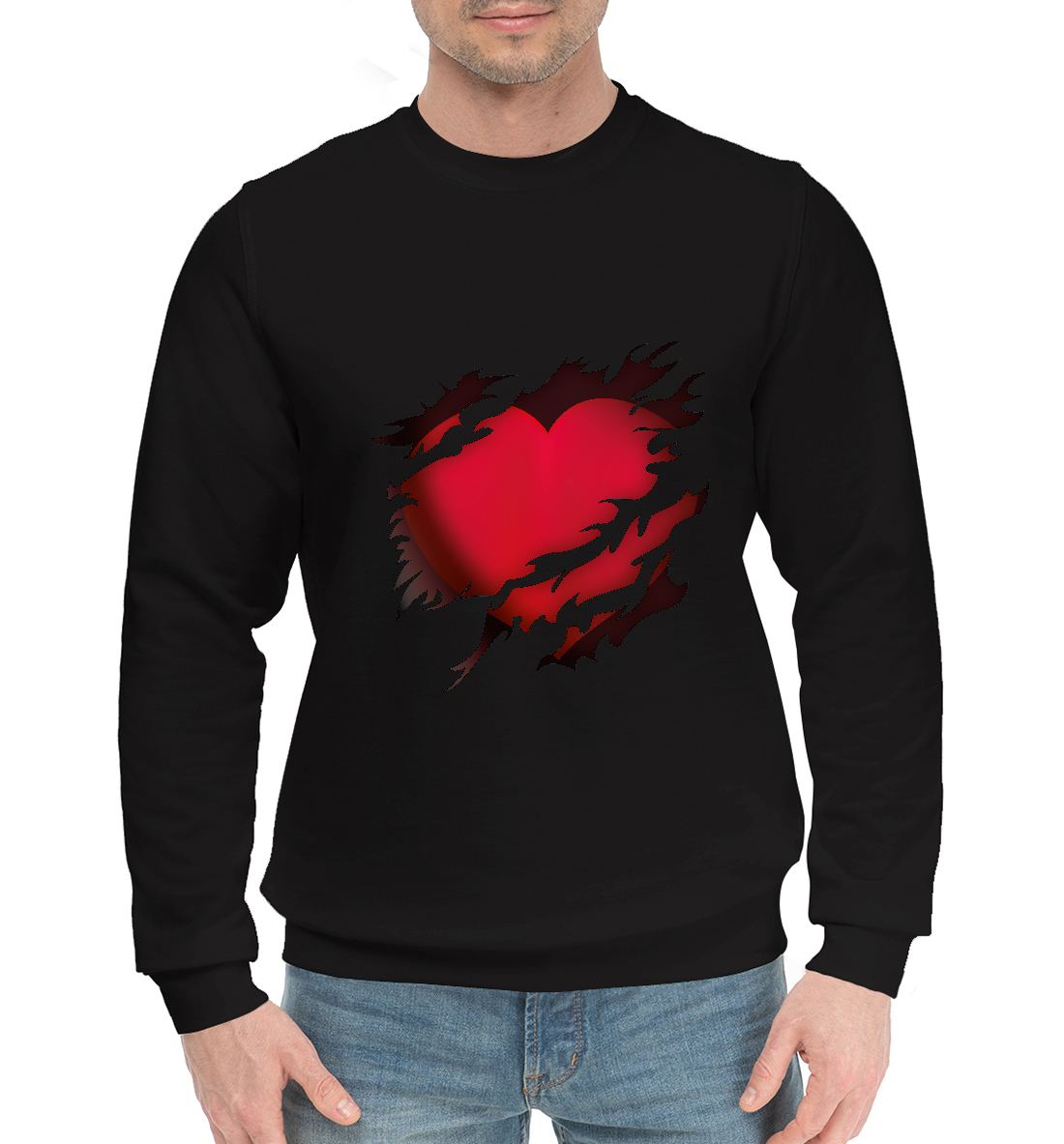 Мужской хлопковый свитшот с принтом «Сердце в разрыве груди»