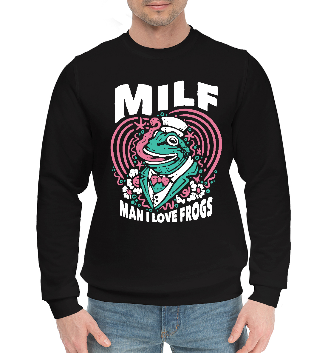 Мужской хлопковый свитшот с принтом «Шаловливая лягуха»