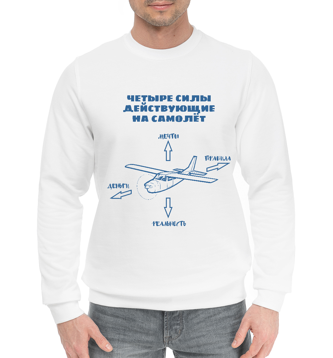 Мужской хлопковый свитшот с принтом «Силы действующие на самолет»