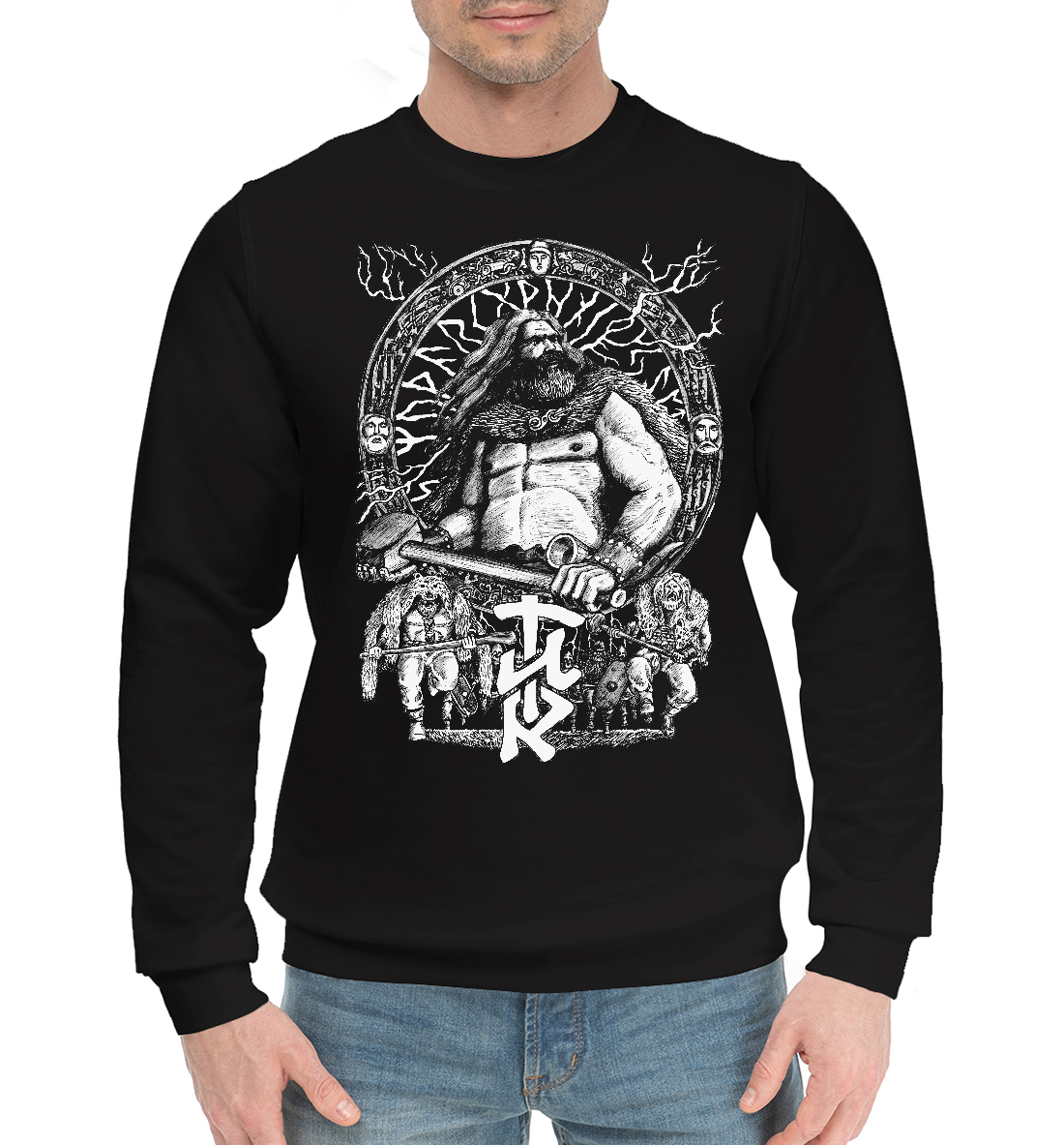 Мужской хлопковый свитшот с принтом «Славянские Боги Перун и Велес»