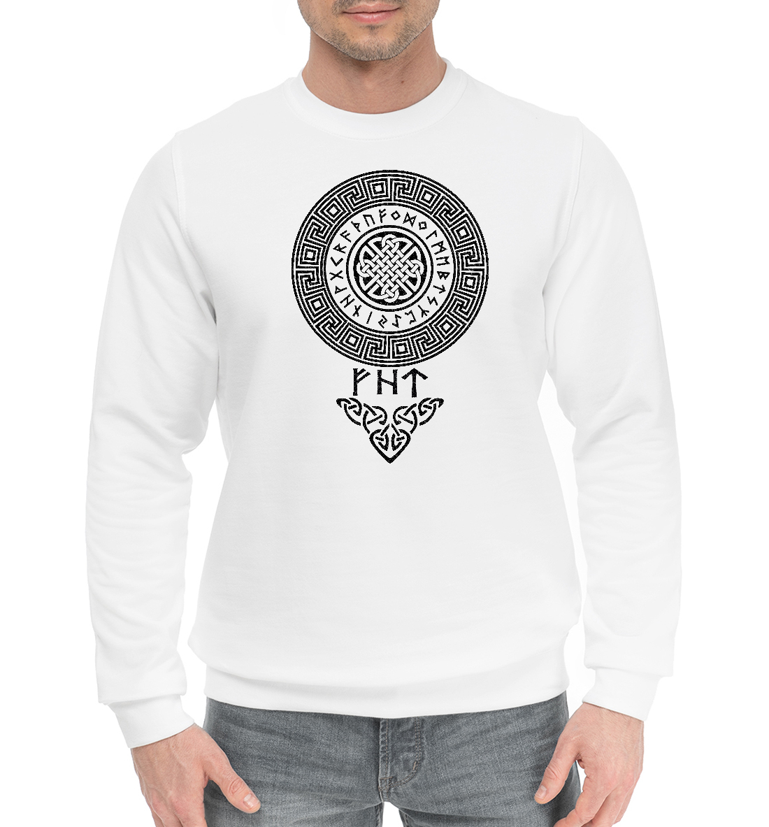 Мужской хлопковый свитшот с принтом «Солнце и руны победы»