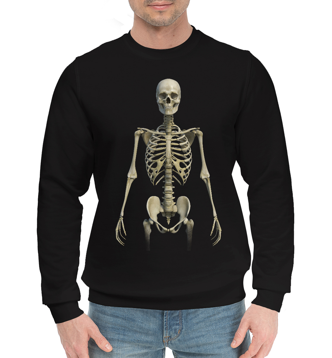 Мужской хлопковый свитшот с принтом «Стоящий скелет»