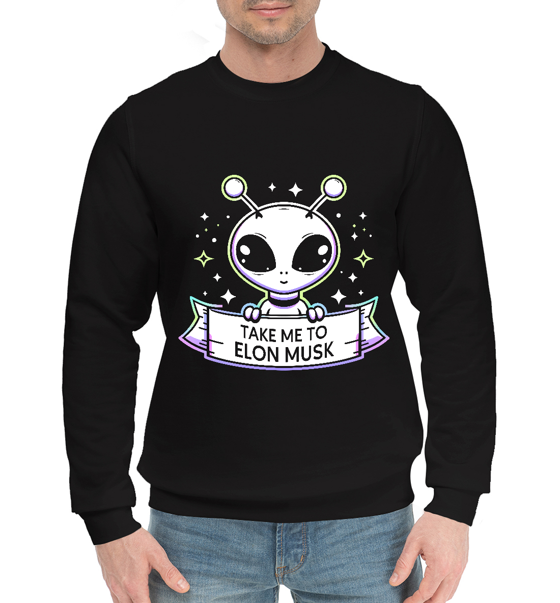 Мужской хлопковый свитшот с принтом «Take me to Elon Musk»