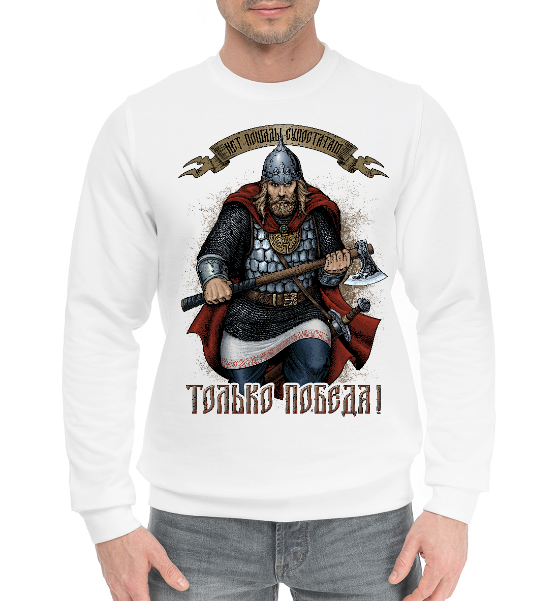 Мужской хлопковый свитшот с принтом «Только победа (белый фон)»