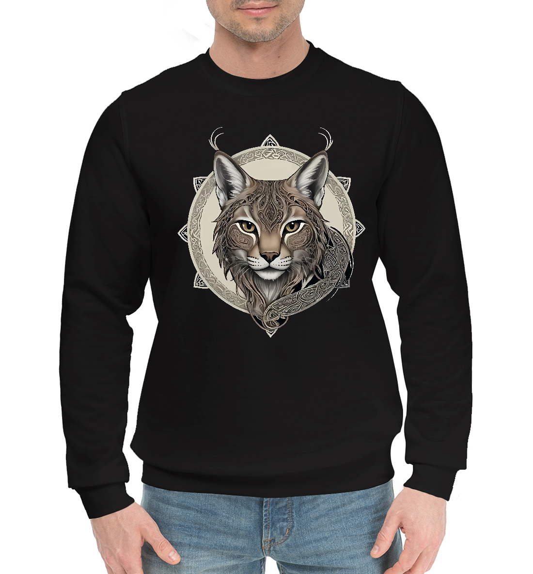 Мужской хлопковый свитшот с принтом «Тотем славян Рысь в кельтском стиле»