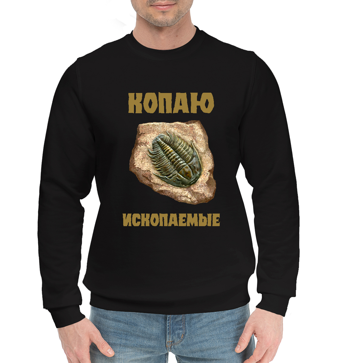 Мужской хлопковый свитшот с принтом «Трилобит на камне копаю ископаемые»