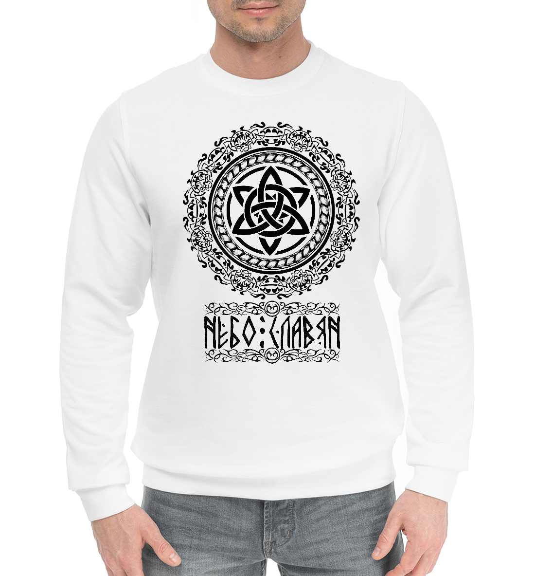 Мужской хлопковый свитшот с принтом «Валькирия (Небо Славян)»