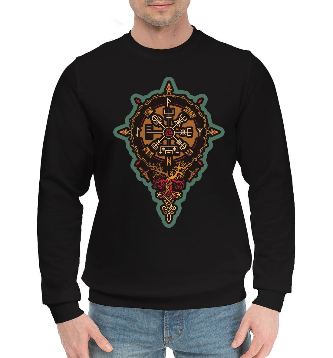 Мужской хлопковый свитшот с принтом «Вегвизир - укажи верный путь»