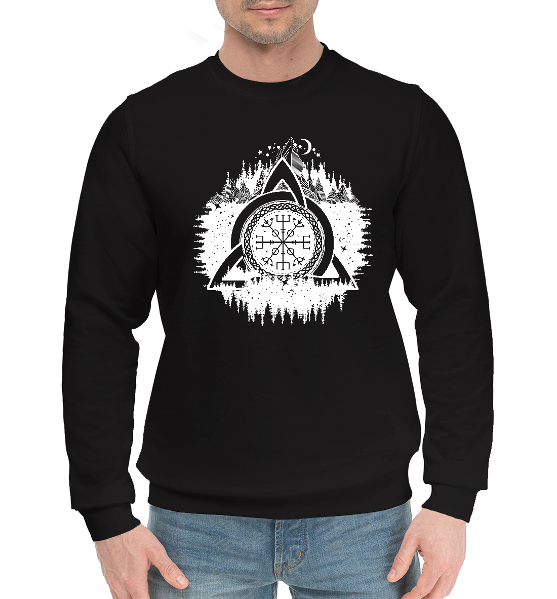 Мужской хлопковый свитшот с принтом «Вегвизир Рунический Компас»