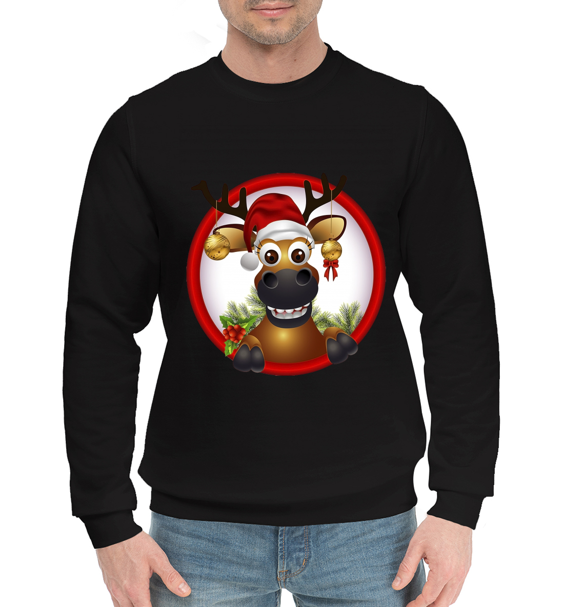 Мужской хлопковый свитшот с принтом «Веселый олень»