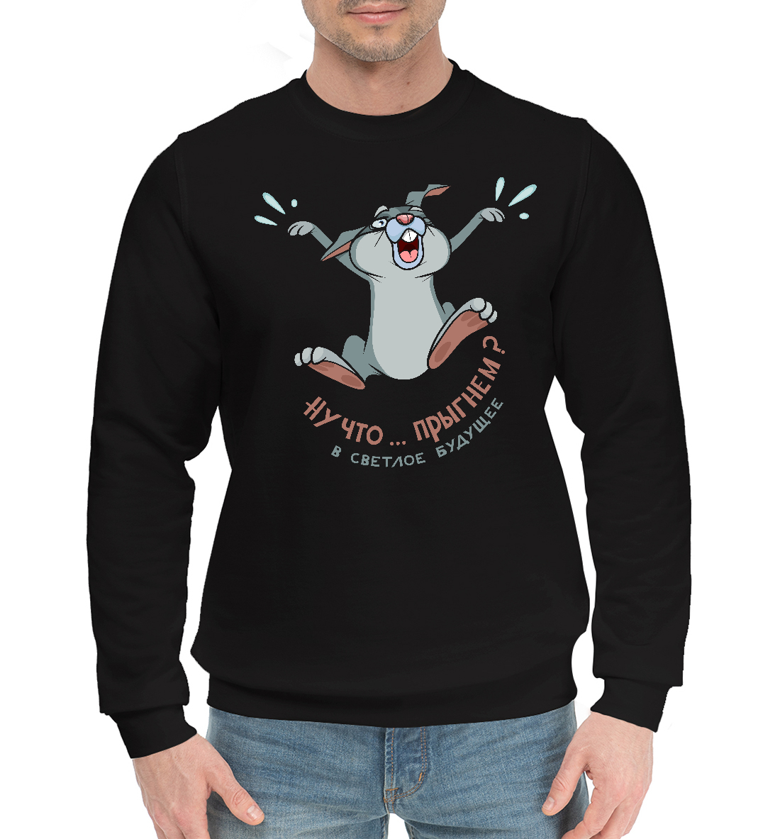 Мужской хлопковый свитшот с принтом «Веселый зайчик прыгает»