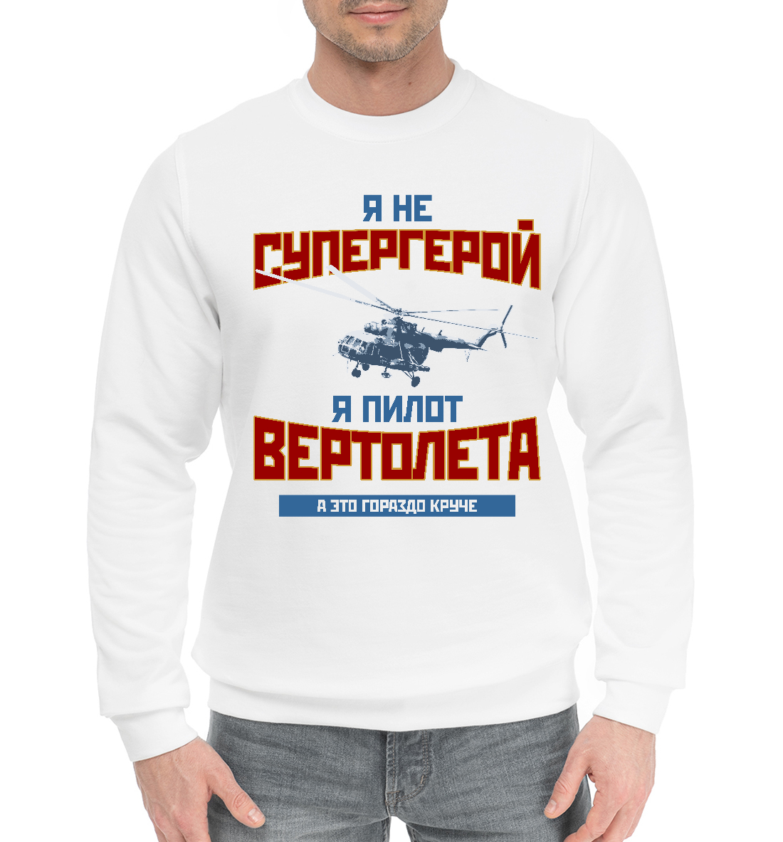 Мужской хлопковый свитшот с принтом «Я пилот вертолета»