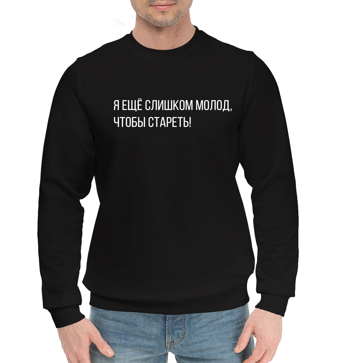 Мужской хлопковый свитшот с принтом «Я слишком молод, чтобы...»