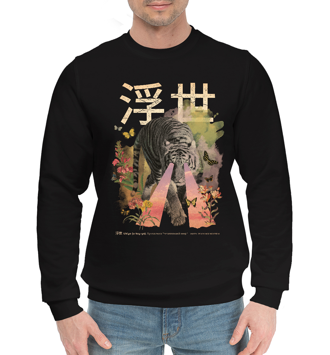 Мужской хлопковый свитшот с принтом «Японский Тигр в стиле Укиё»