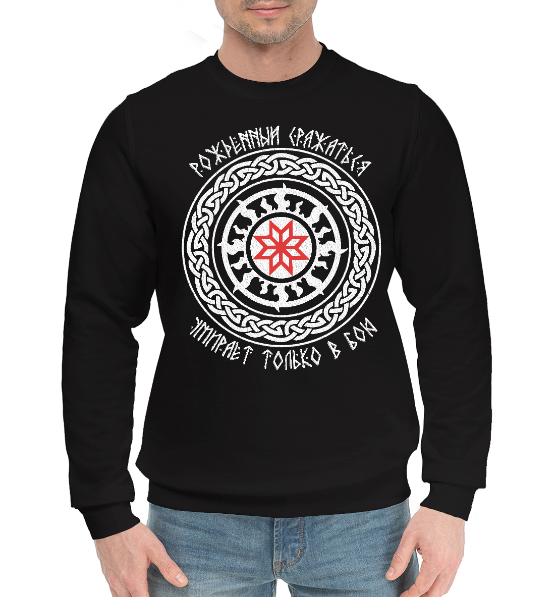 Мужской хлопковый свитшот с принтом «Знак РатиБорец в Коловрате»