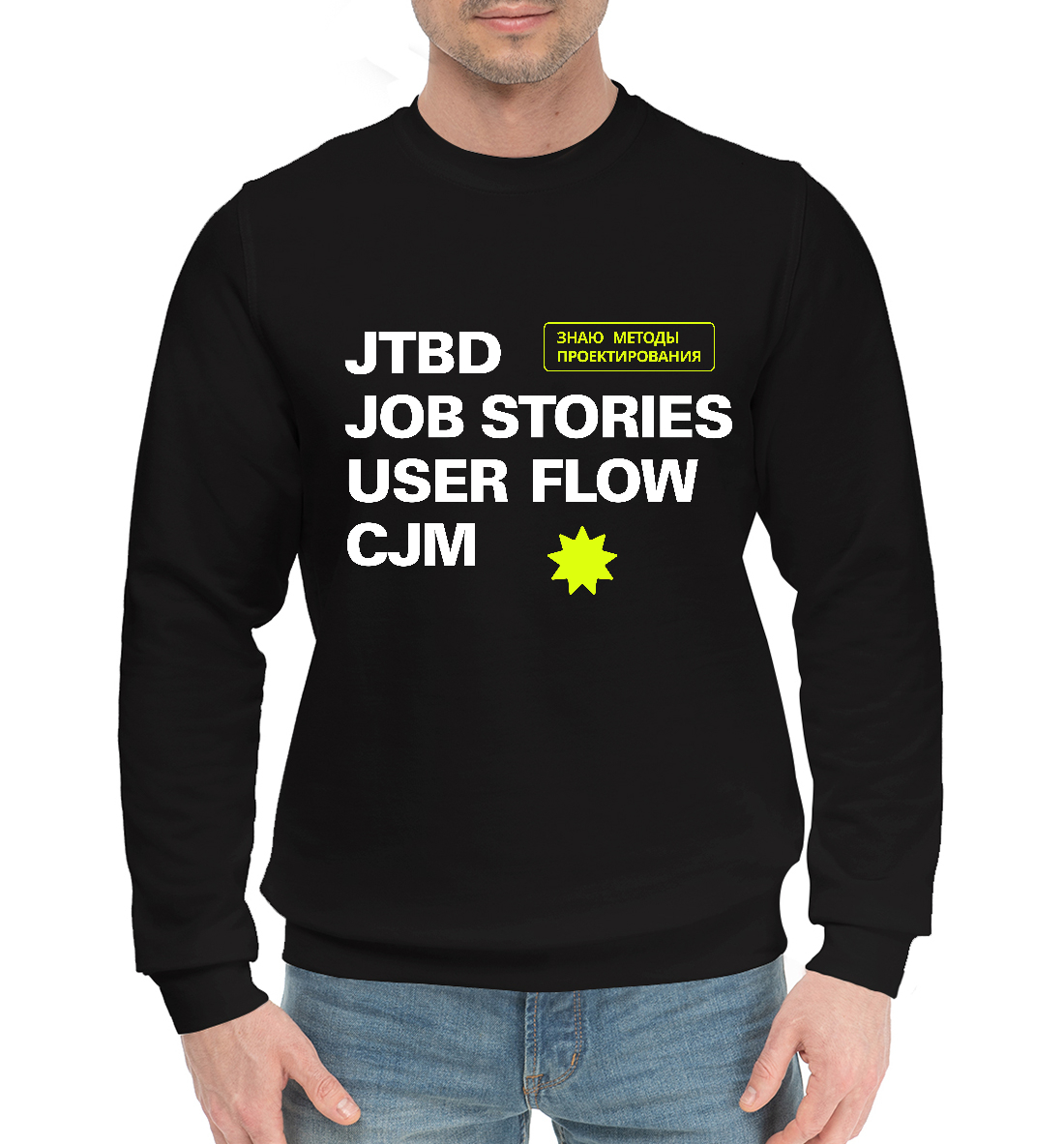 Мужской хлопковый свитшот с принтом «Знаю методы проектирования»