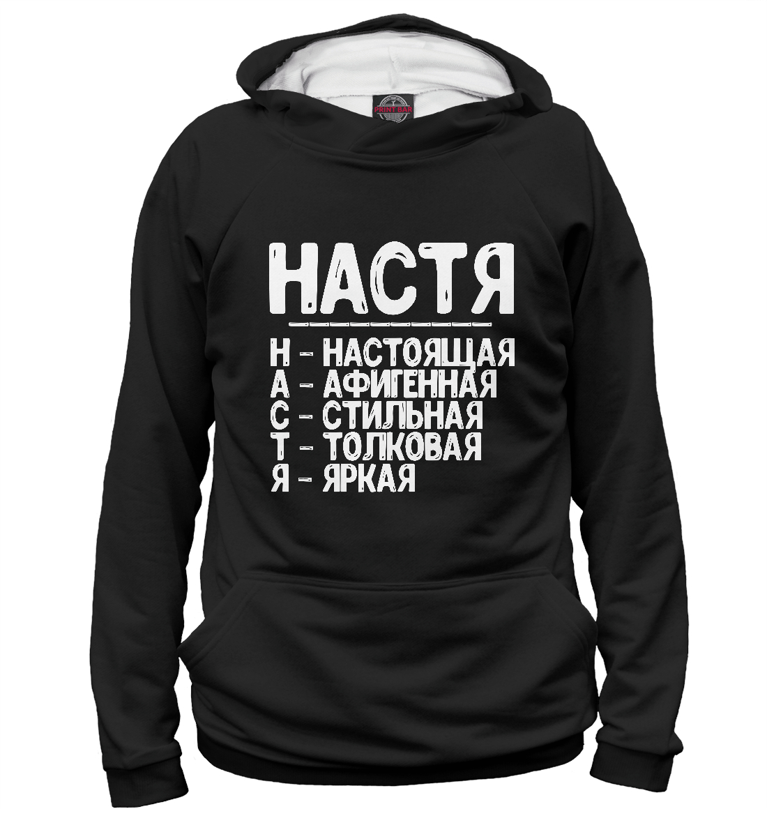 Мужское худи с принтом «Красивые комплименты Настя»