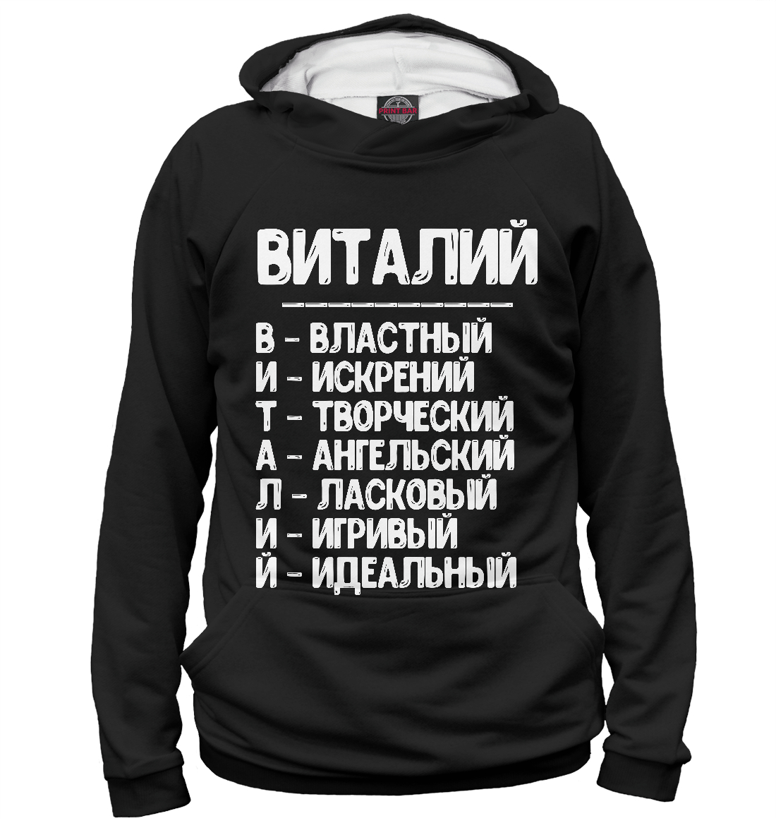 Мужское худи с принтом «Красивые комплименты Виталий»