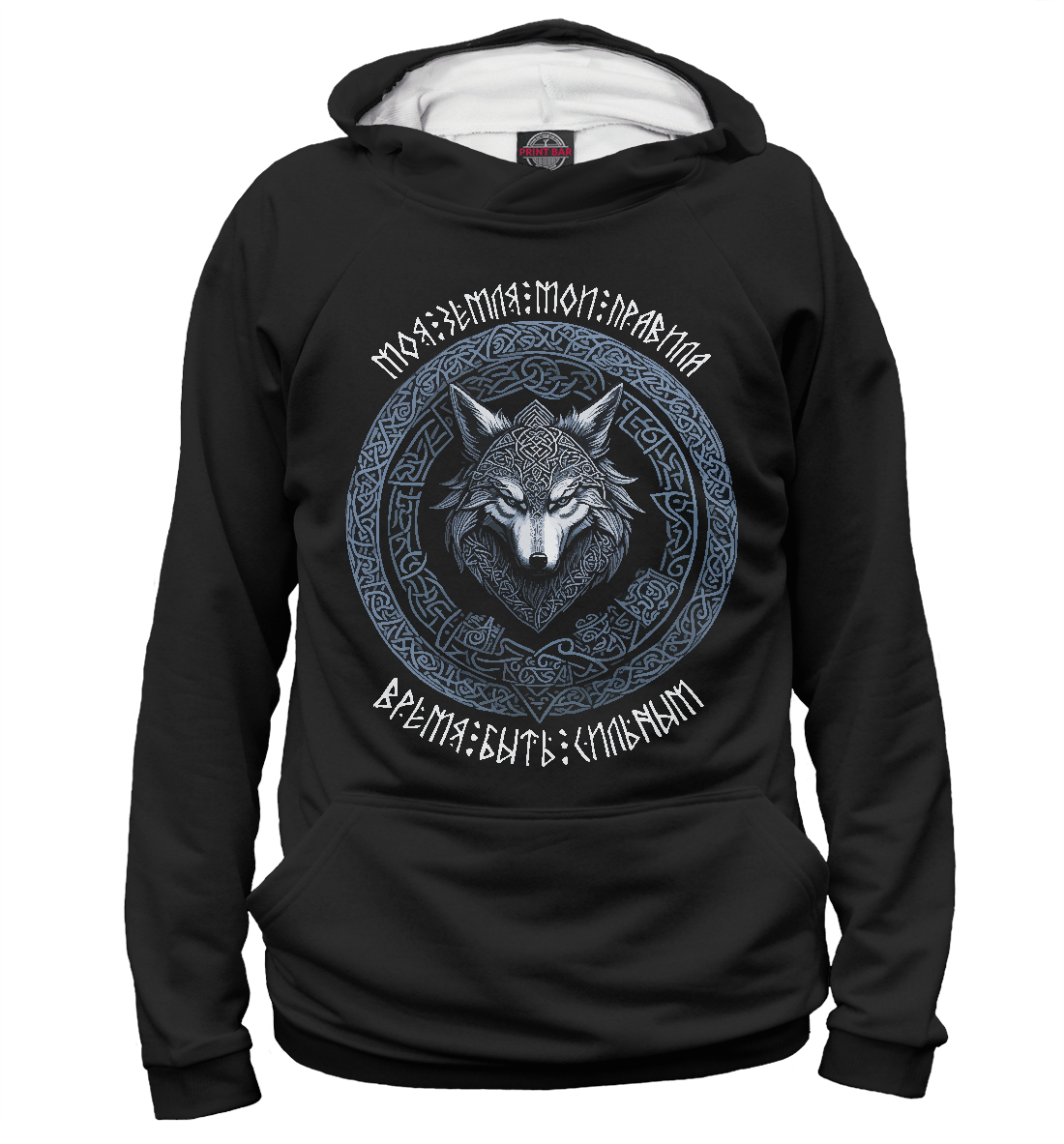 Мужское худи с принтом «Лютый волк / Моя земля - мои правила»