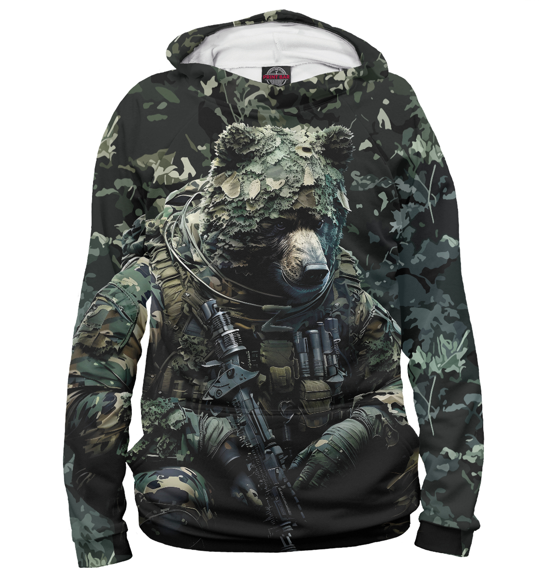 Мужское худи с принтом «Медведь снайпер в камуфляже»