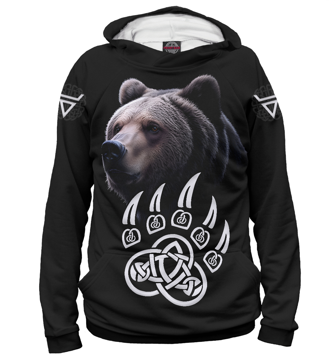 Мужское худи с принтом «Медведь Велес - слава роду, слава руси»