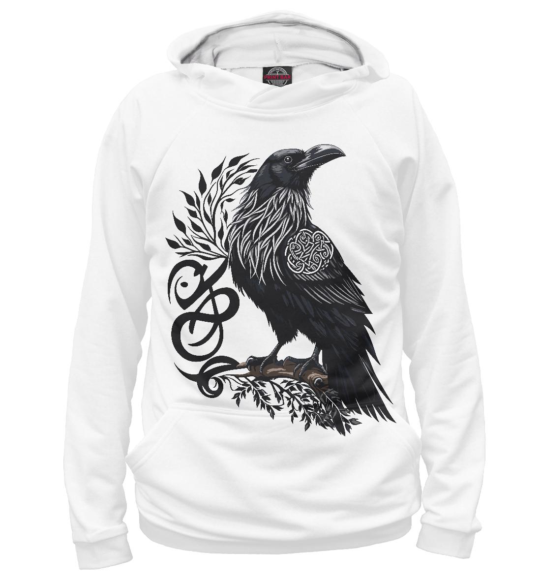Мужское худи с принтом «Славянский ворон в кельтском стиле»