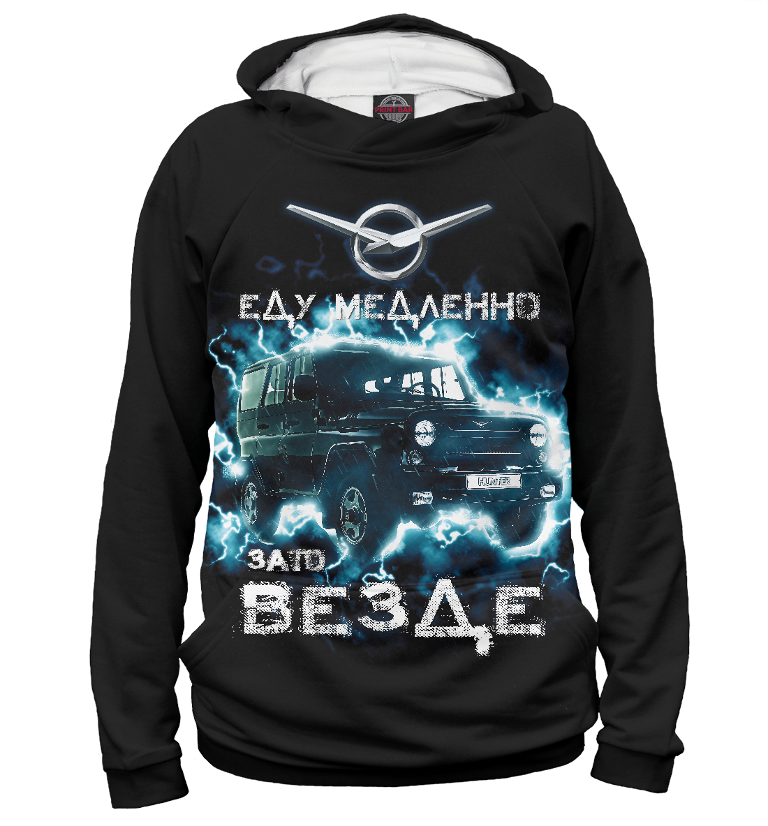 Мужское худи с принтом «УАЗ - еду медленно, зато везде!»