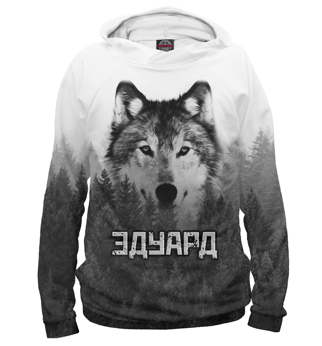 Мужское худи с принтом «Волк над лесом - Эдуард»