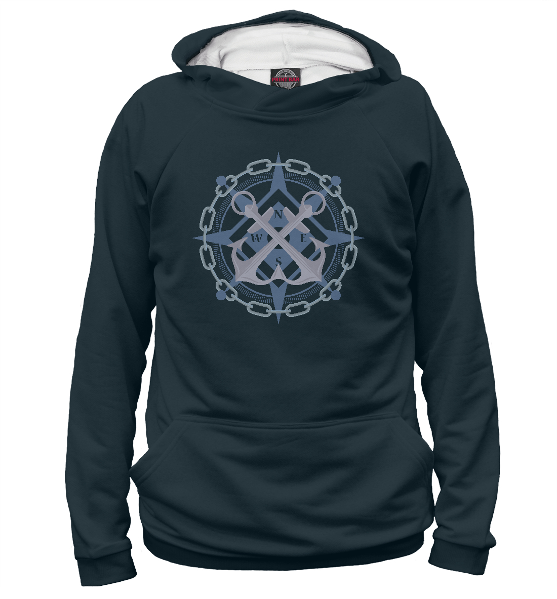 Мужское худи с принтом «Якорь и роза ветров»
