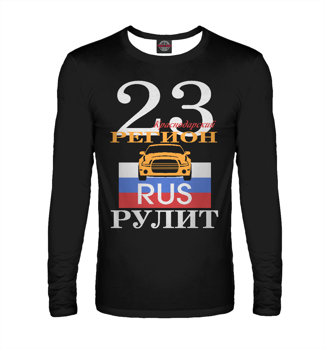 Мужской лонгслив с принтом «23 регион Краснодар»