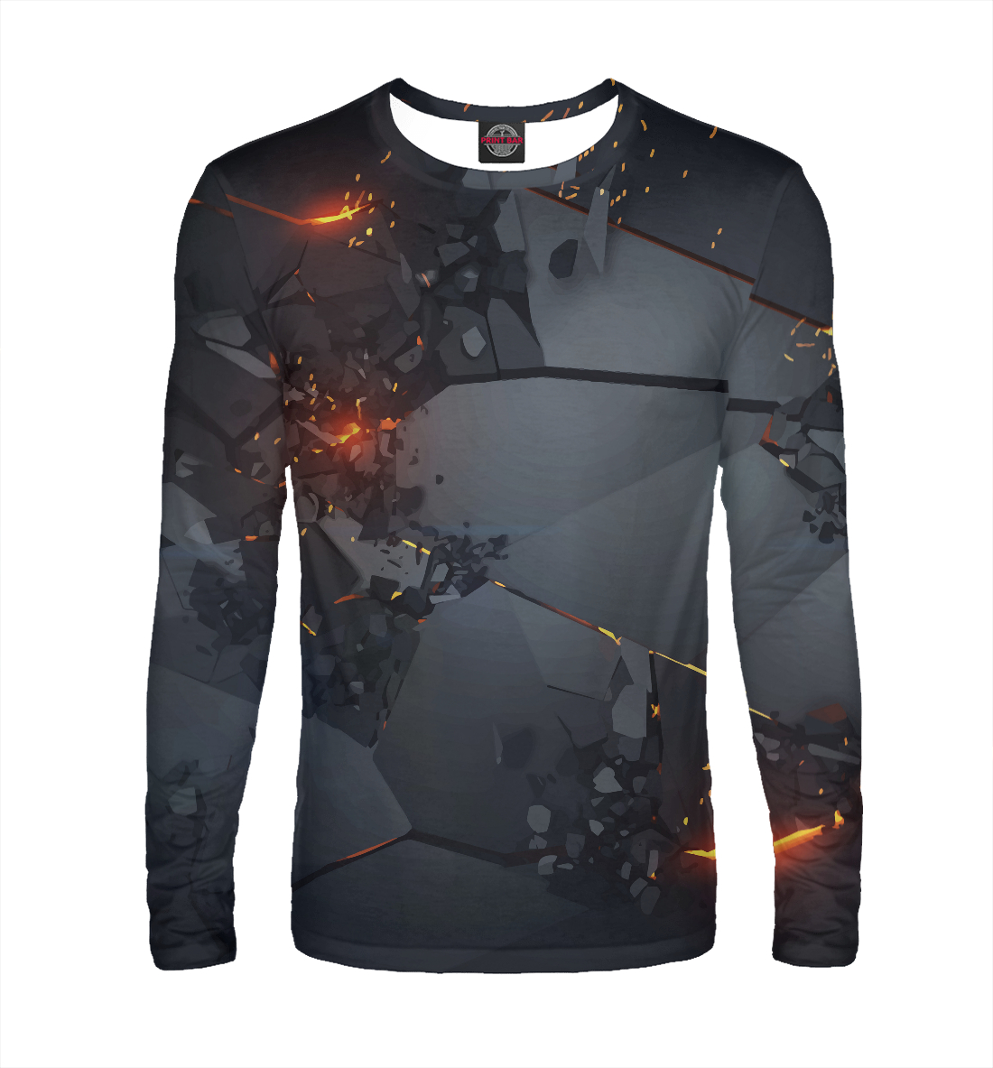 Мужской лонгслив с принтом «3D плиты. Трещины»