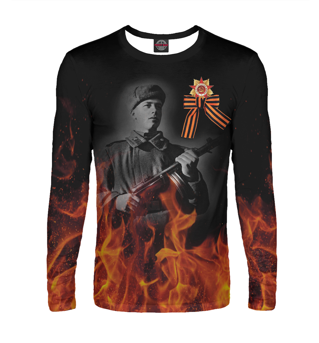 Мужской лонгслив с принтом «9 мая Солдат в День Победы»