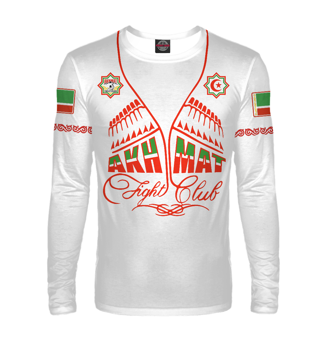 Мужской лонгслив с принтом «Akhmat Fight Club White»