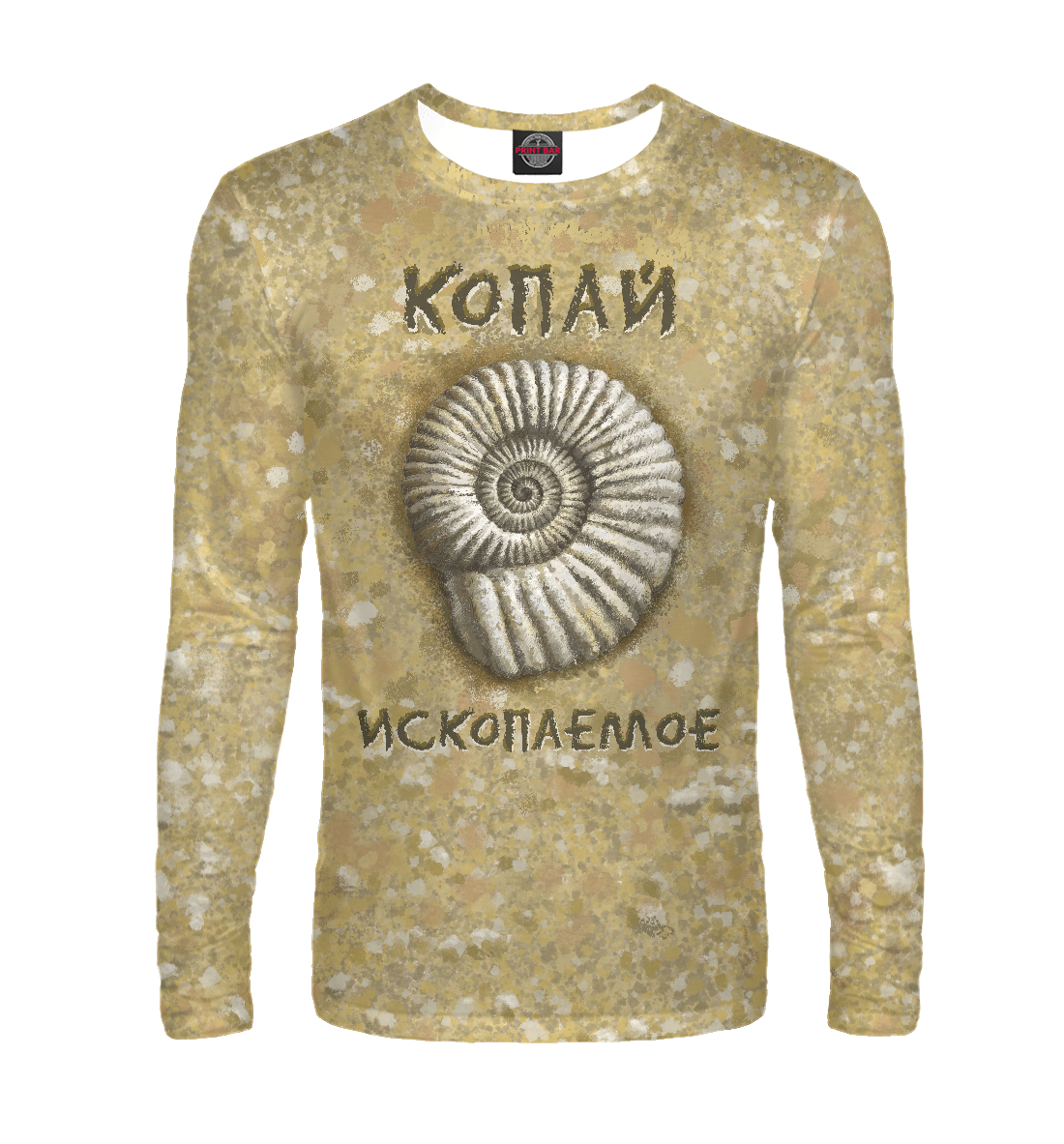 Мужской лонгслив с принтом «Аммонит на желтом фоне»