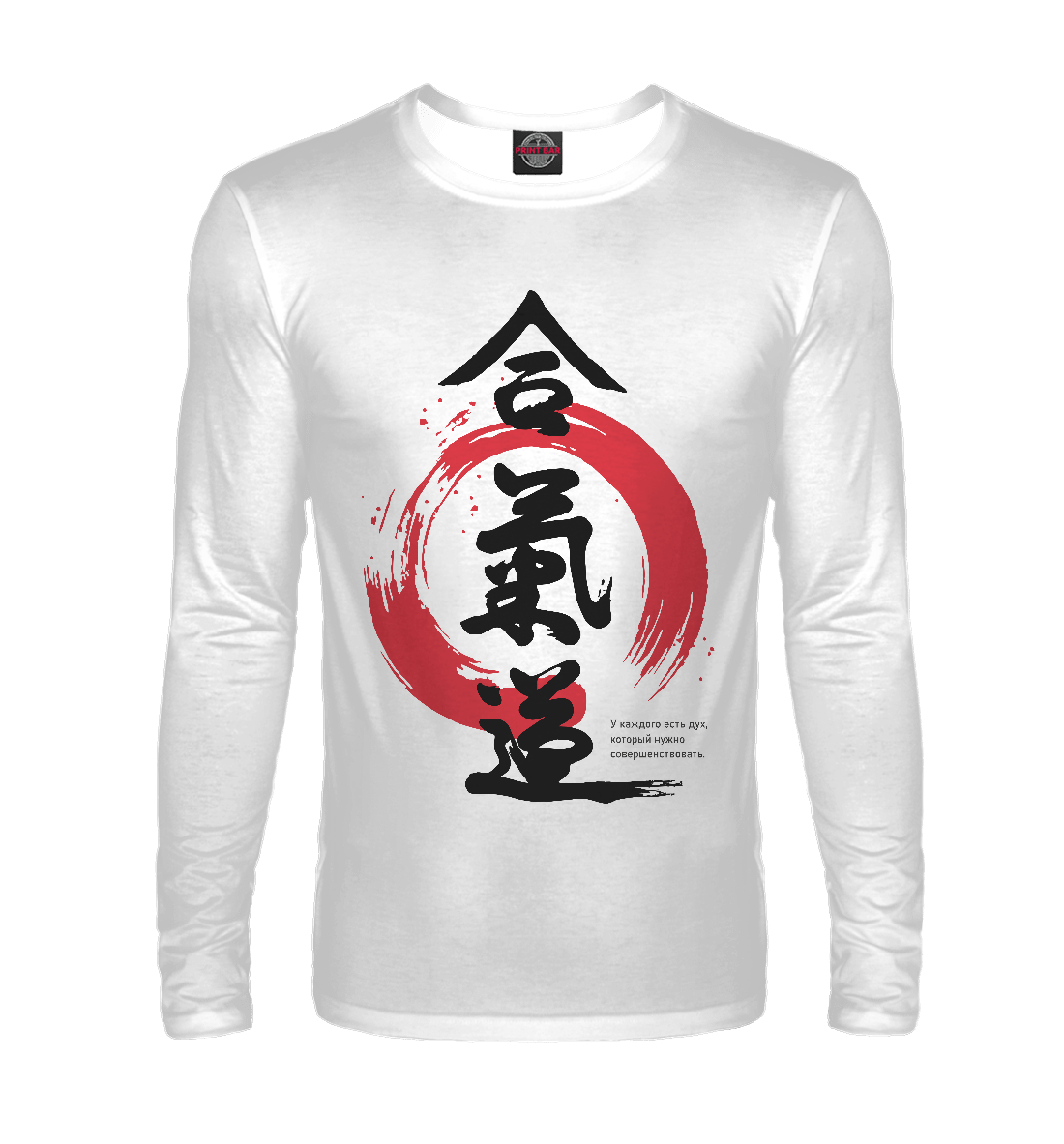 Мужской лонгслив с принтом «Айкидо - у каждого есть дух»