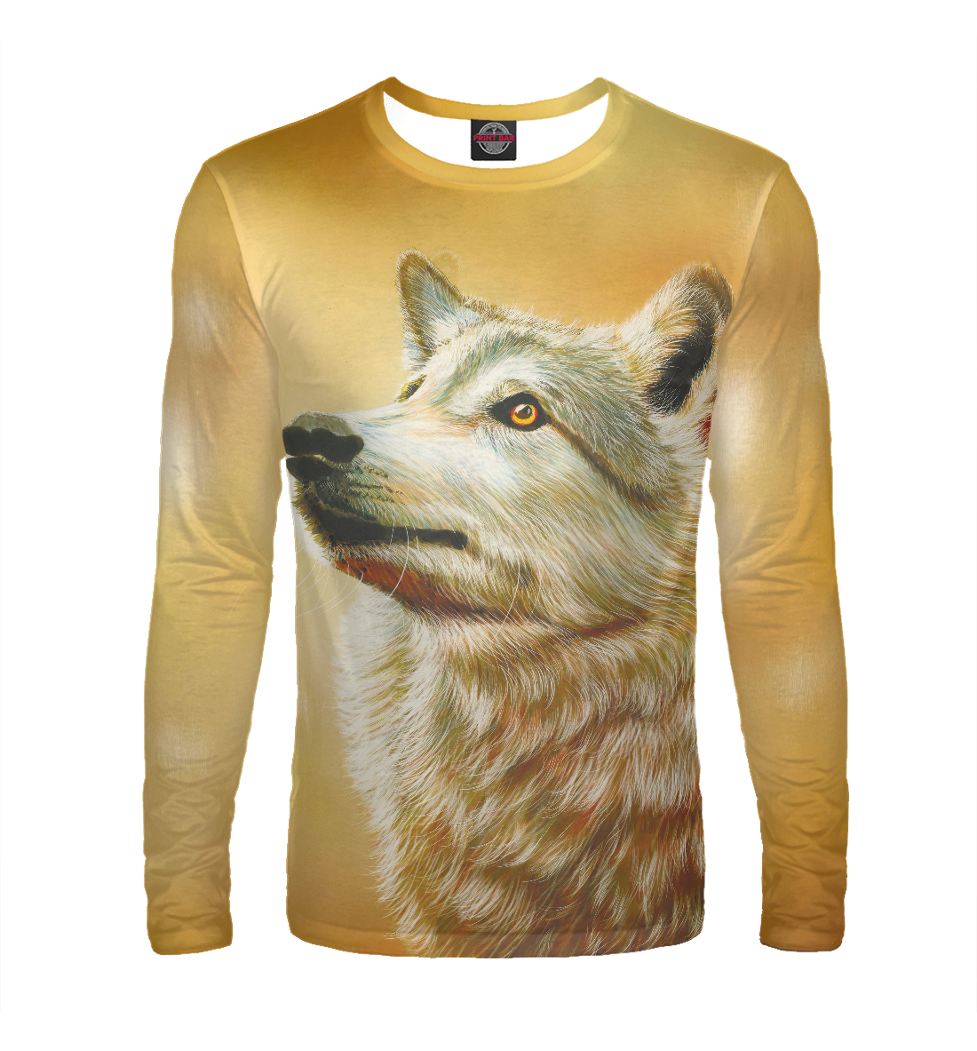 Мужской лонгслив с принтом «Белый спокойный волк»
