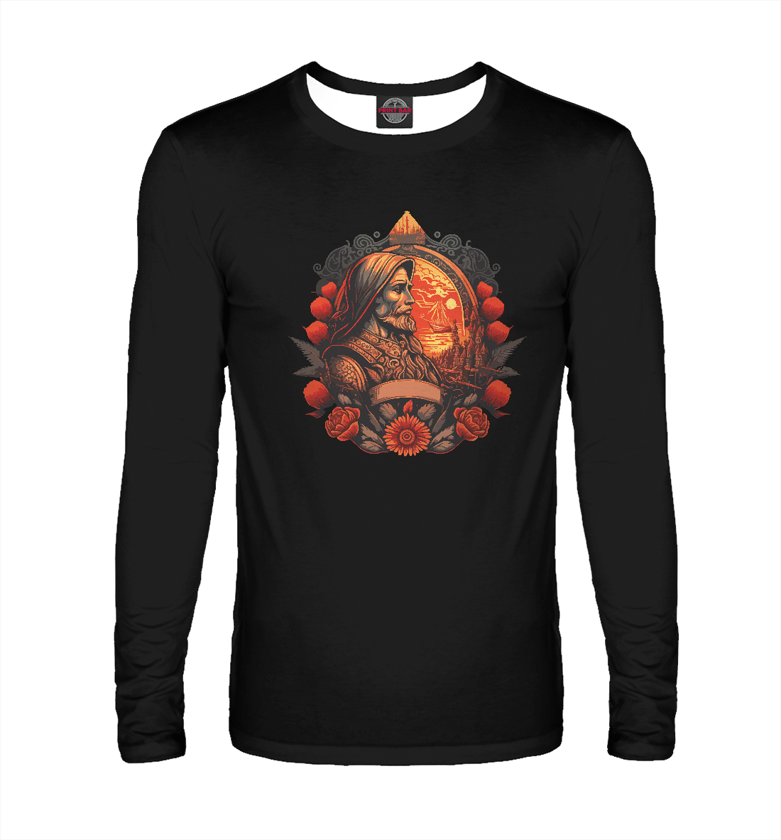 Мужской лонгслив с принтом «Богатырь с орнаментами»