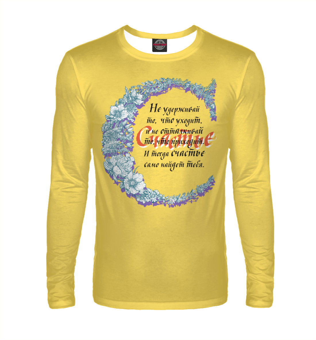 Мужской лонгслив с принтом «Буква растительная с счастьем»