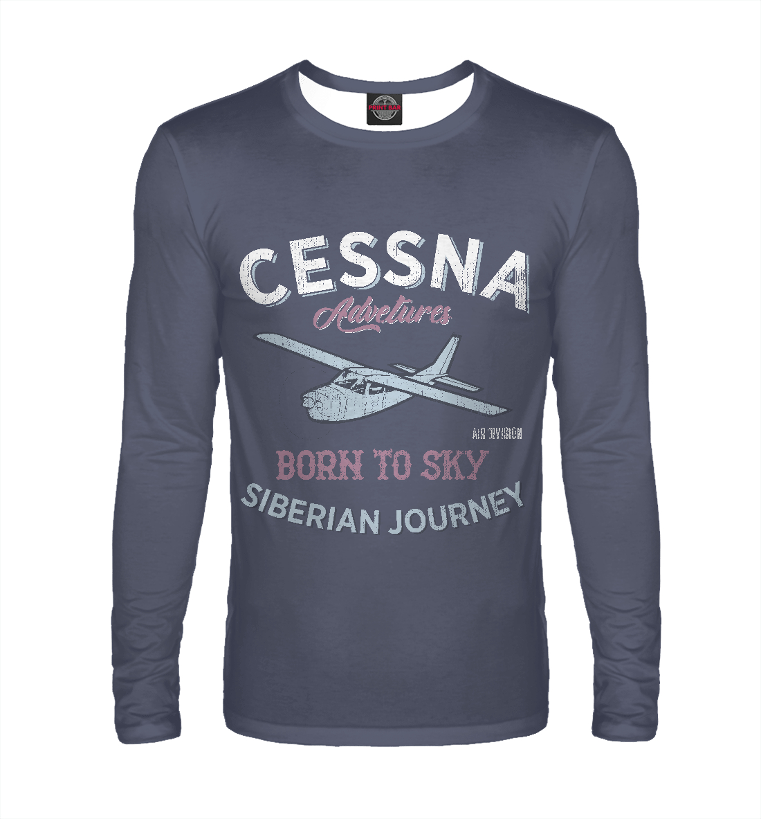 Мужской лонгслив с принтом «Цессна 210 - Сибирские приключения»