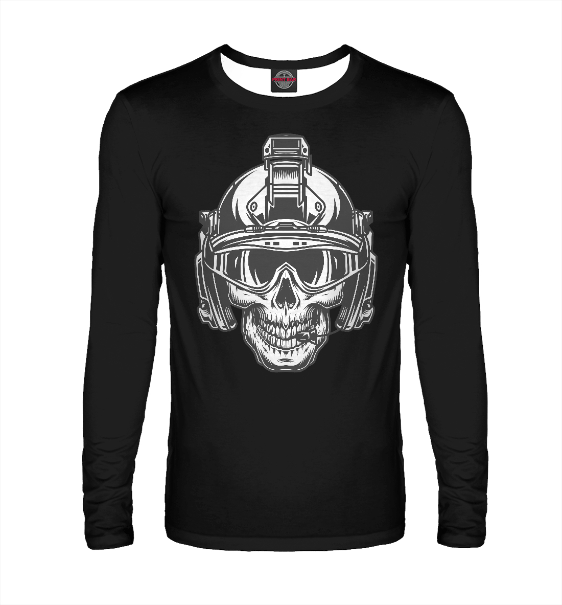 Мужской лонгслив с принтом «Череп-пилот»