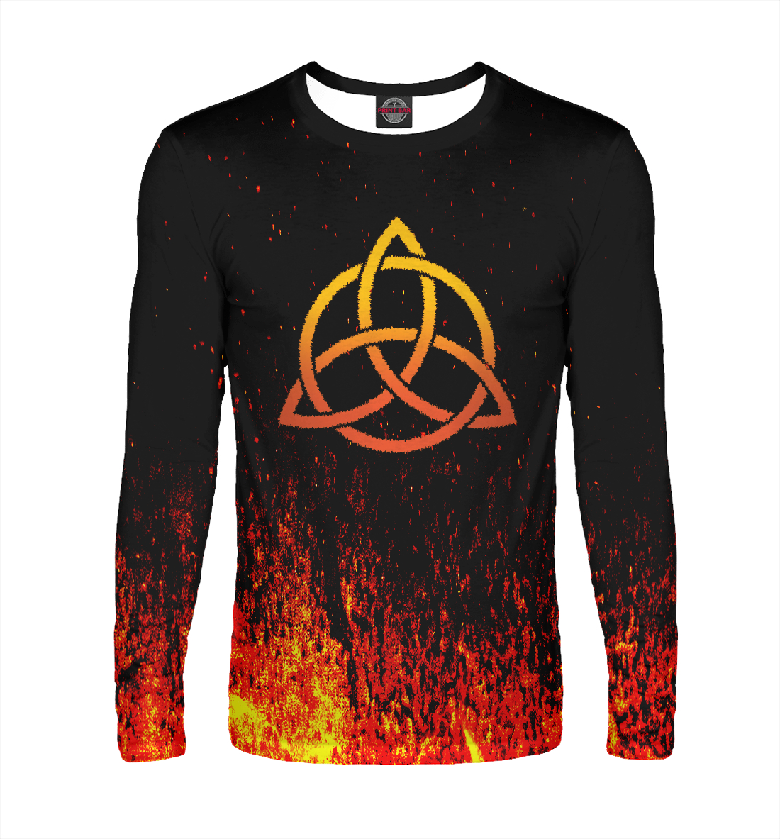 Мужской лонгслив с принтом «Черное солнце огненное»
