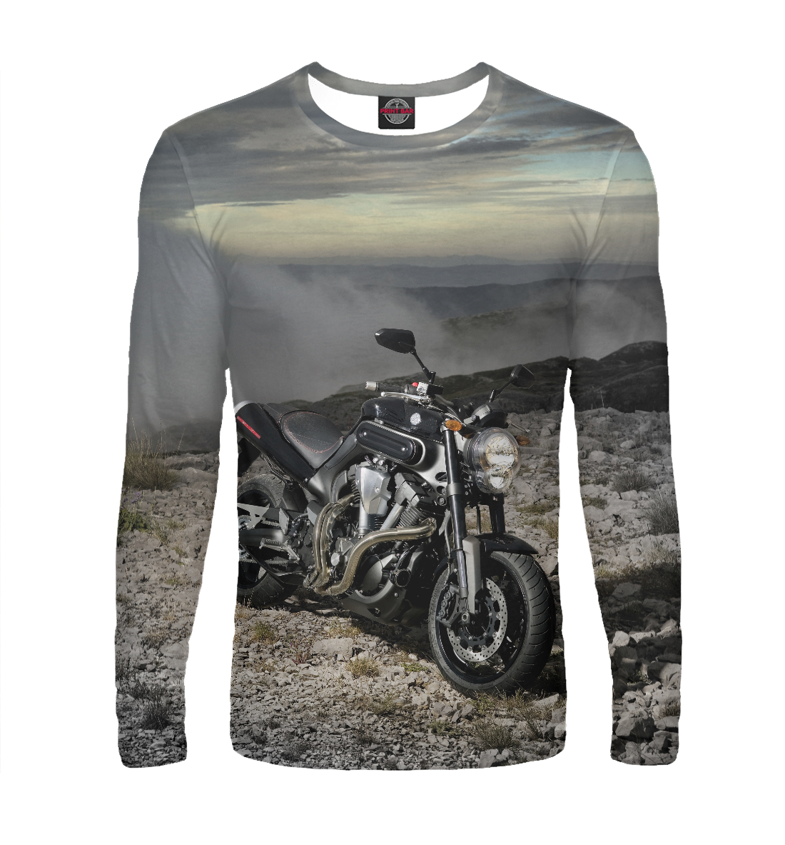Мужской лонгслив с принтом «Черный Мотоцикл»