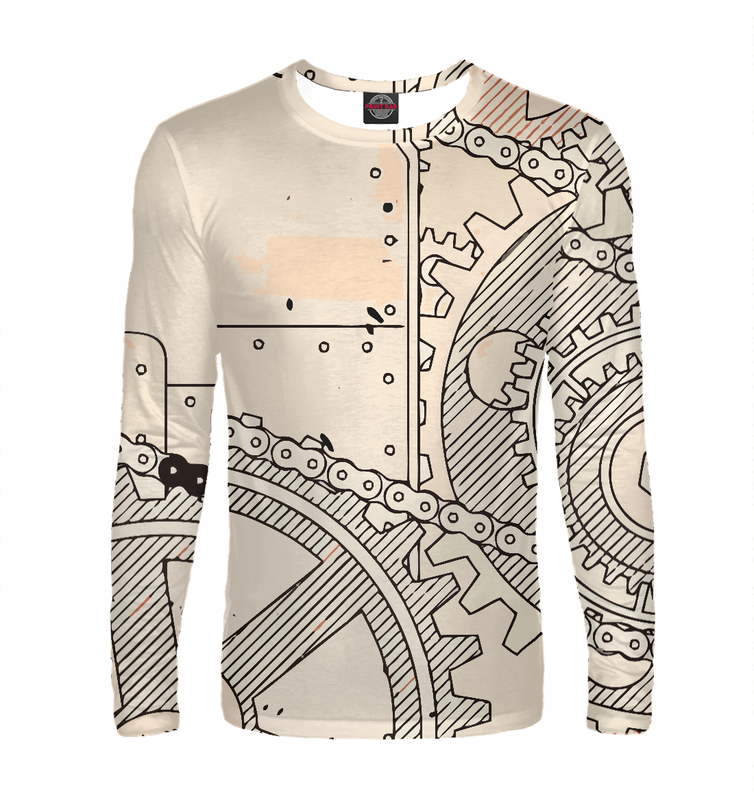 Мужской лонгслив с принтом «Чертёж Механизма Шестерни»
