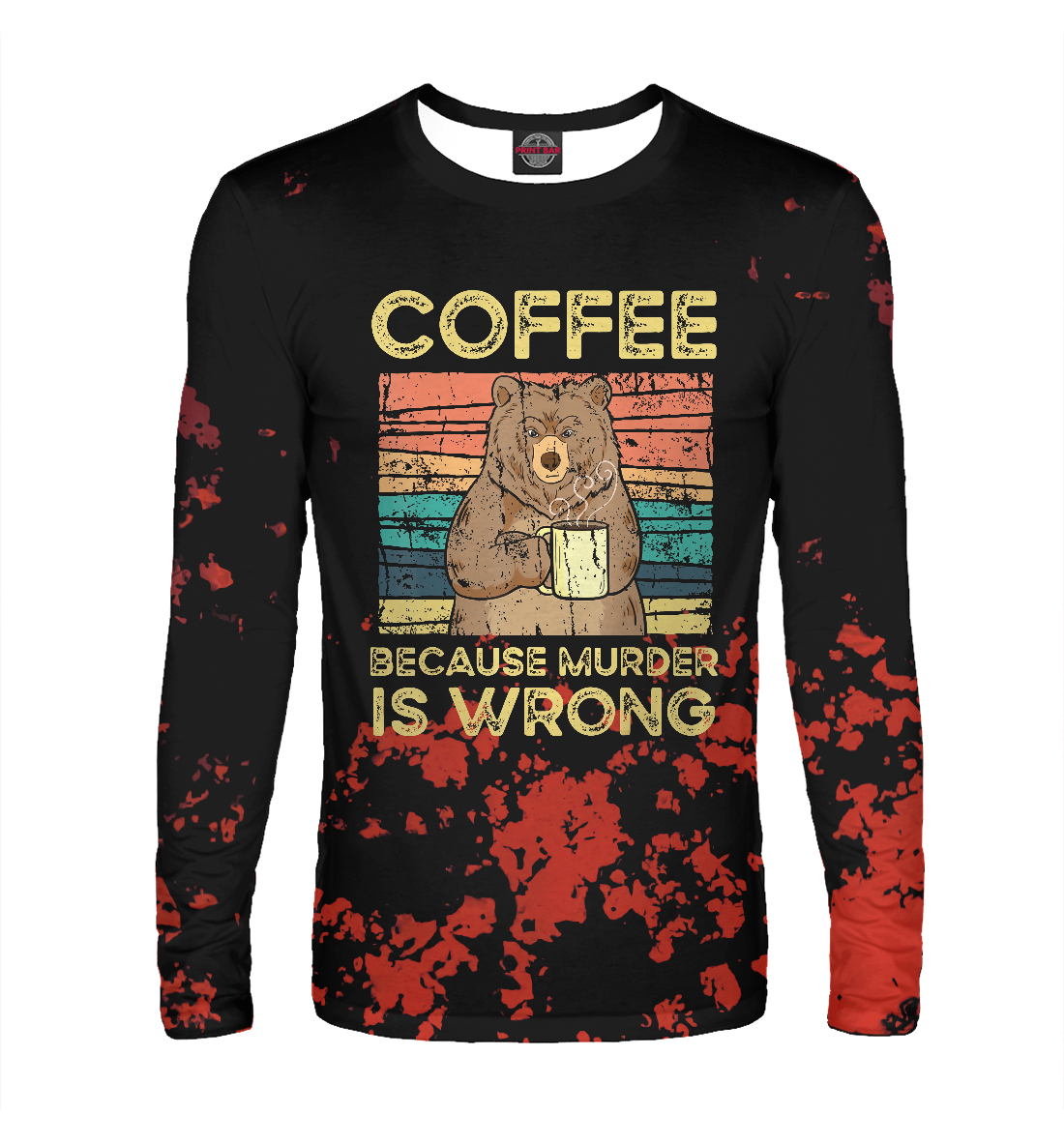 Мужской лонгслив с принтом «Coffee Because Murder Wrong»
