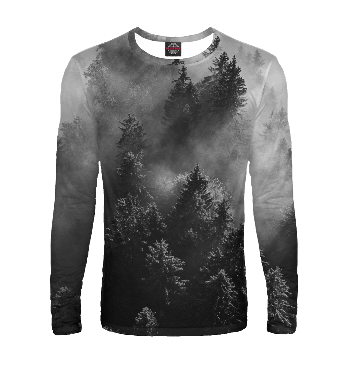 Мужской лонгслив с принтом «Деревья в тумане»