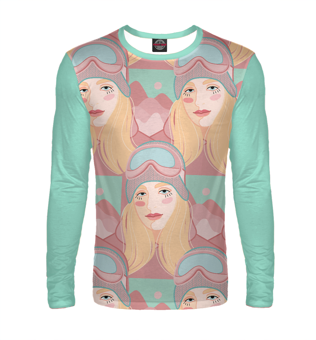 Мужской лонгслив с принтом «Девушка в лыжной экипировке»