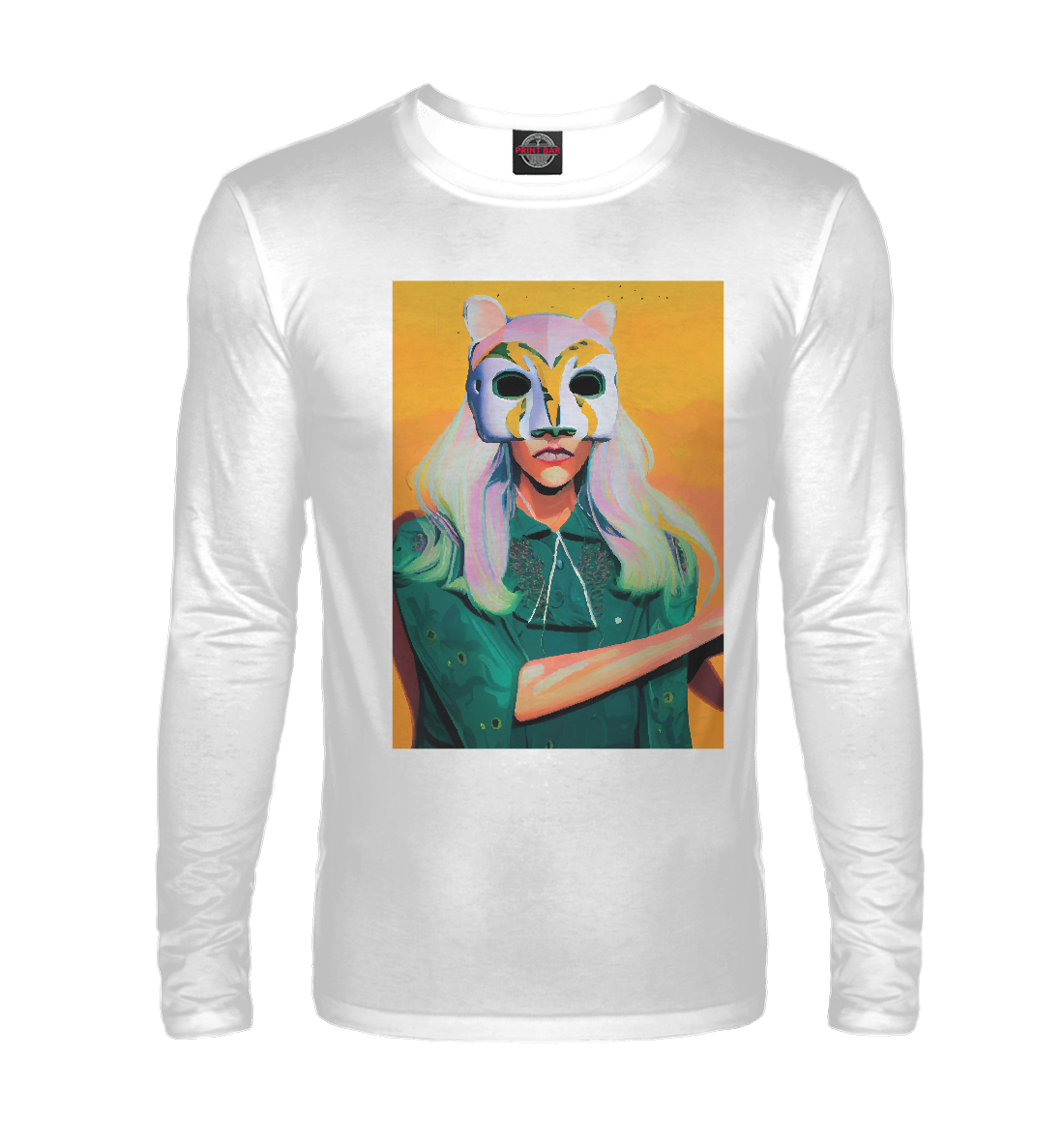 Мужской лонгслив с принтом «Девушка в маске»