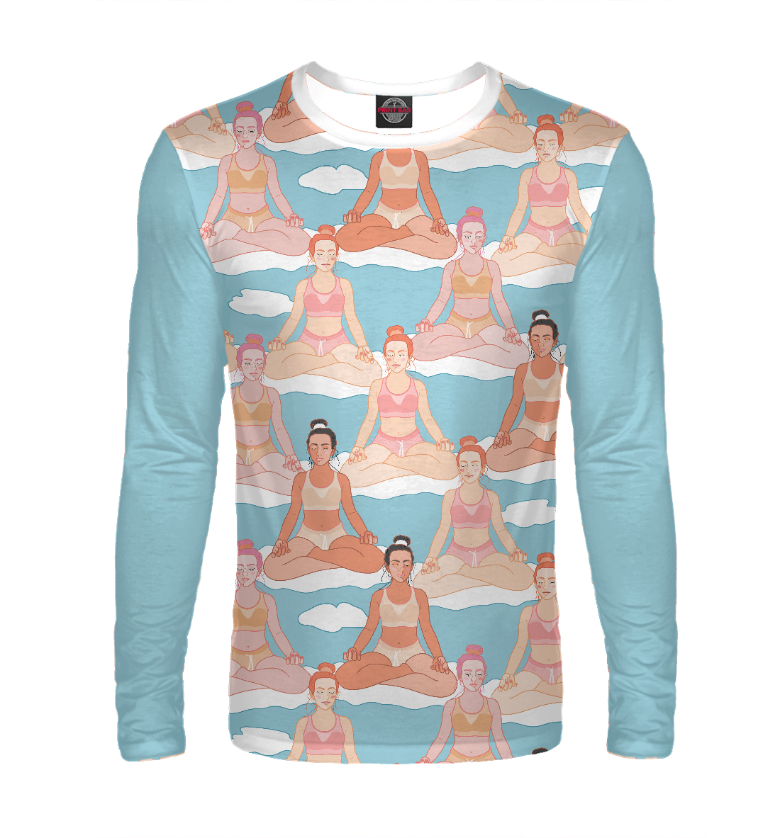 Мужской лонгслив с принтом «Девушка в позе лотоса»