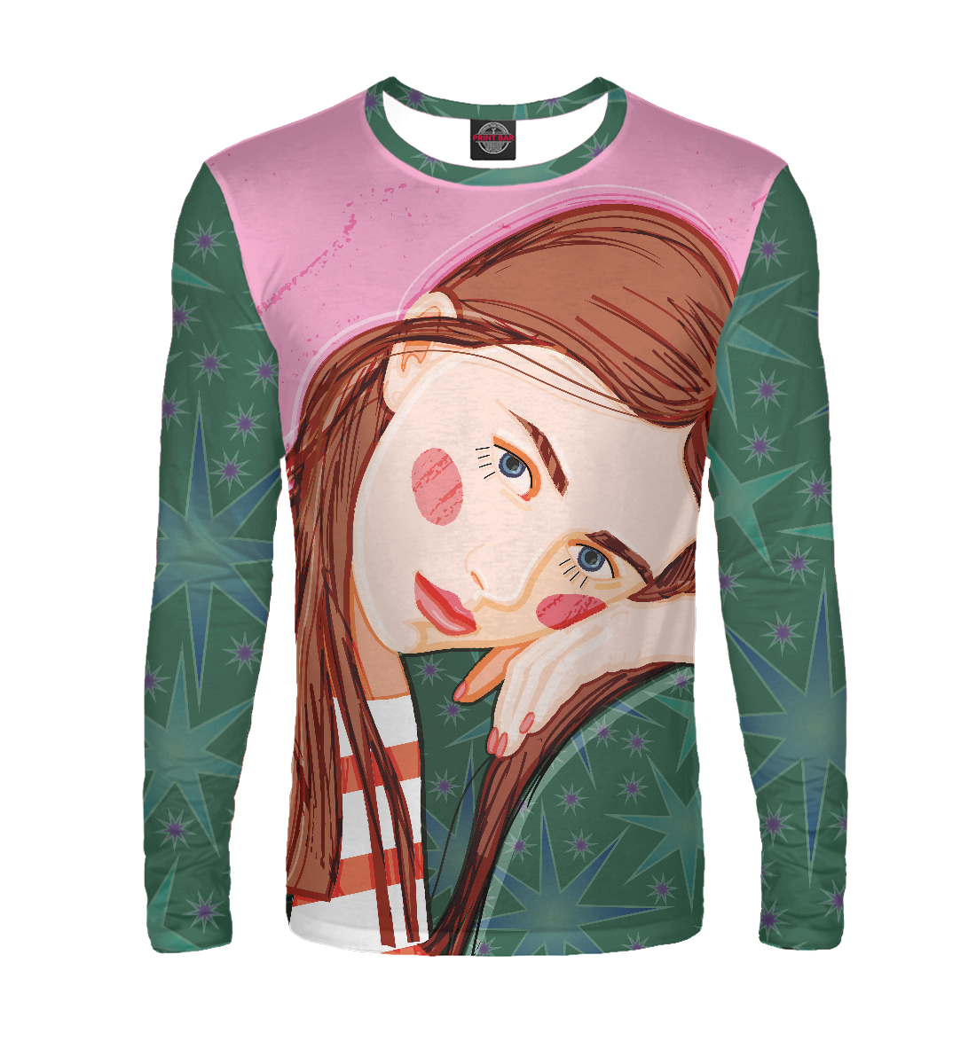 Мужской лонгслив с принтом «Девушка в зелёном платье»